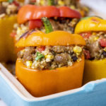 These Beyond Sausage stuffed peppers are the definition of comfort food with a plant powered twist. Tender bell peppers get packed to the brim with fluffy quinoa, melty dairy free pepper jack, hearty black beans and juicy corn for a filling that is bold, colorful and incredibly satisfying. The spices bring warm southwestern vibes while the Beyond Sausage adds that savory depth that takes everything over the top.